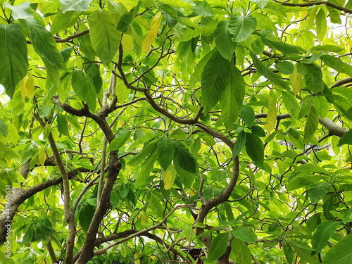 Pisonia, auspicious tree with light yellow-green leaves (Scientific name that Pisonia grandis R.Br.). Moonlight Tree originated in tropical America. Leaves hit the moonlight, thus creating a soft glow