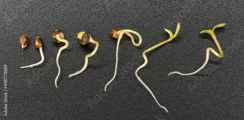timelapse of hemp seed germination on a black background