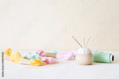 #207972689Skincare flatlay concept, cosmetic accessories and products for cleansing, massage, treatment, moisturizing, elasticity of the face and body, hygiene, youth and health of the skin