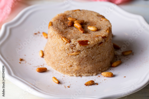 Traditional Turkish semolina sweet desert halva (Turkish name; irmik helvasi)