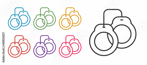 Set line Handcuffs icon isolated on white background. Set icons colorful. Vector