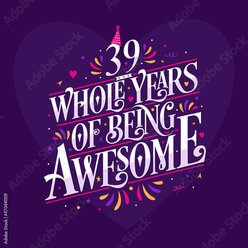 39 whole years of being awesome. 39th birthday celebration lettering