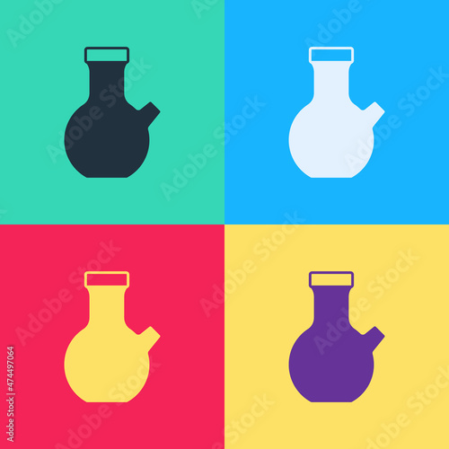 Pop art Test tube and flask chemical laboratory test icon isolated on color background. Laboratory glassware sign. Vector