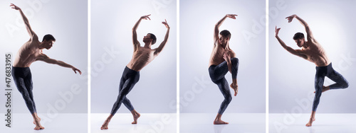Set of dancing man in different choreographic positions. Ballet dancers collection.