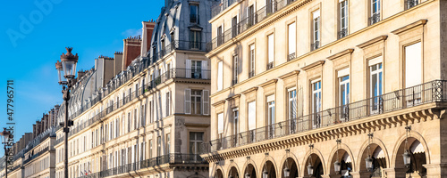 Paris, panorama of the rue de Rivoli, typical building, parisian facade