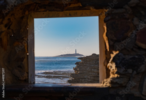 Cape of trafalgar seen from a window in Caños de Meca, south Spain