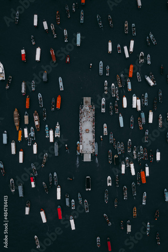 Aerial photo of many boats carrying the Virgen de la Candelaria in Tlacotalpan Veracruz, Mexico