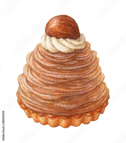 リッチなモンブラン ケーキ 手描き