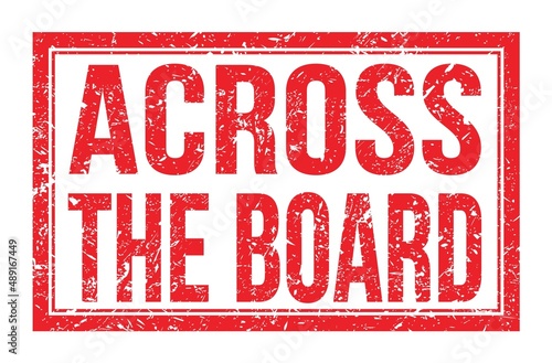 ACROSS THE BOARD, words on red rectangle stamp sign