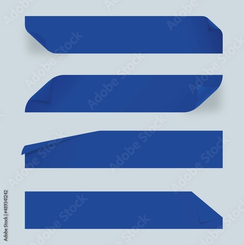 Horizontal banner with realistic blue paper texture. Sticky masking stationery strip with wrinkles corners.