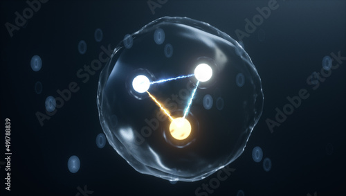 Theoretical physics quark and gluon subatomic simulation. 3D illustration