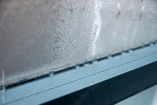 サッシ・窓枠・水分・結露・湿気・湿度・水滴・アップ
