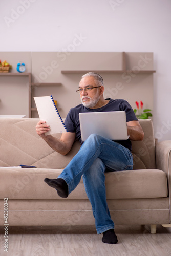 Old male employee working from home during pandemic