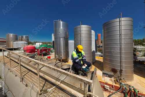 operazioni di manutenzione da parte di un operaio in un impianto industriale