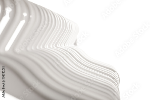 Abstract white plastic hangers for clothes hanging on rod from clothing rack. Isolated on white background..
