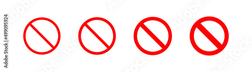 Red forbidden icons set on white background. Simple ban symbol. White background.