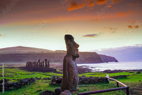 The ancient moai of Ahu Togariki, on Easter Island of Chile
