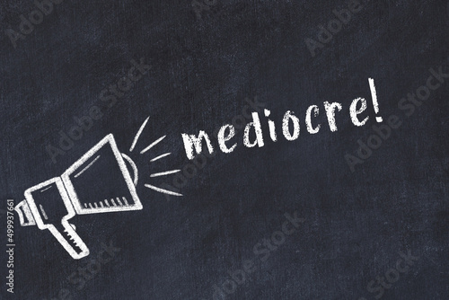 Chalk loudspeaker and inscription mediocre on black chalkboard