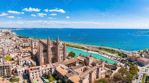 Aerial view of La Seu, the gothic medieval cathedral of Palma de Mallorca in Spain