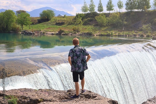 Chłopak podziwiający Wodospad Niagara w Czarnogórze