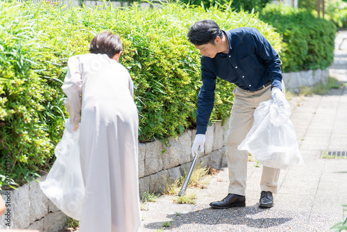 ボランティアでゴミ拾いをする人々(清掃・掃除・社会貢献)
