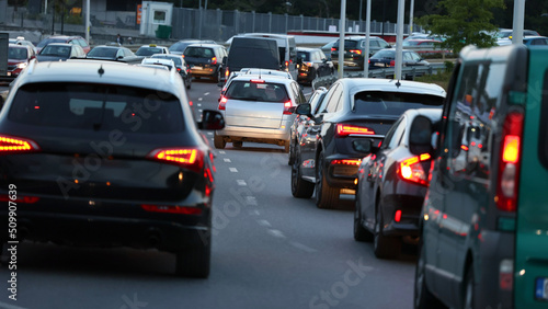Wieczorne korki samochodowe podczas szczytu komunikacyjnego
