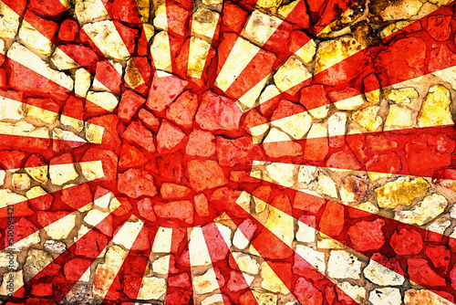 Flaga wojenna , marynarki wojennej cesarstwa Japonii , namalowana na murze z białych kamieni ( piaskowca i wapienia ) .