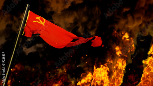 flag of Soviet Union (USSR, SSSR) on burning fire background - hard times concept - abstract 3D rendering