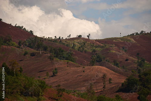Planting ground of a new crop season on mountain slope after slash-and-burn land clearing. Forest lost and soil erosion form shifting cultivation in southeast asia.