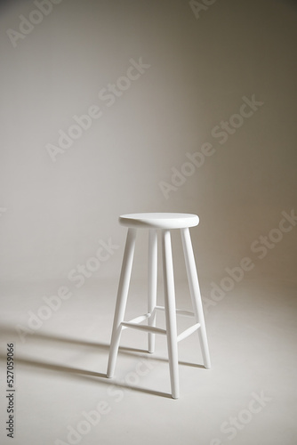 White stool with shadow on white background. Location in studio with tabouret on white background