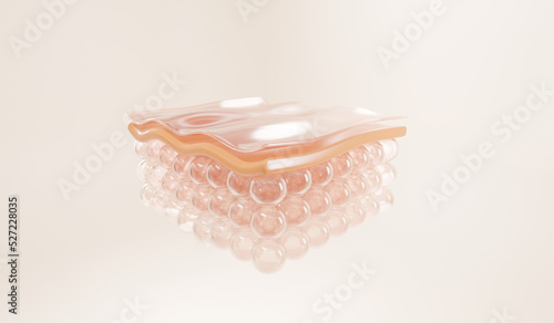 3d skin cell microscope, saggy skin of the skin cell, skin layer up. 3d rendering