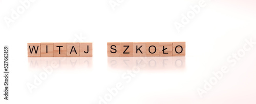 Witaj szkoło - napis z drewnianych literek, szkoła, początek roku