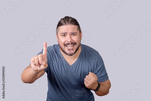 A man begs for just one last time. Raising his index finger to illustrate his intention. Passionately pleading seemingly in desperation.