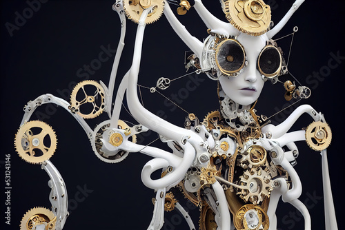 Mechanical humanoid spider. Arachne. Steampunk style animal. 3d illustration