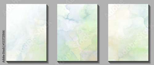 Watercolor vector art background set for cards, flyer, poster, banner and cover design. Hand drawn watercolour artistic illustration for design. Place for text. Painted texture for design.