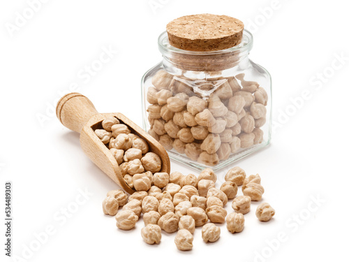 Cieciorka w drewnianej szpatułce i małym słoiczku na białym tle
