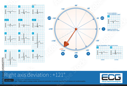 When the electrical axis deviates to the right, the maximum QRS vector is located in the lower right quadrant, which can be interpreted in combination with the QRS wave characteristics of limb leads.