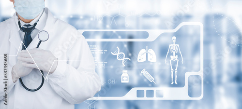 Doctor man write a history of DNA graph and biochemical research scientist working with a microscope, human DNA detection graph, Checking for abnormalities in the body, science and experiment concept