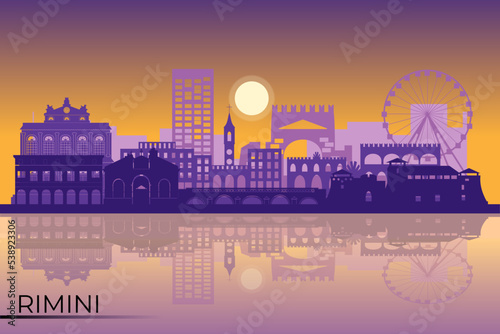 Italy, Rimini outline city skyline, linear illustration, banner, travel landmark, buildings silhouette.