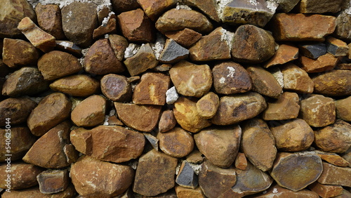 Beautiful background pattern image of a wall made of round stone red color rocks. Texture