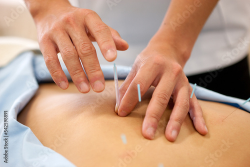 A close-up of a woman's hands with white manicured, natural-looking nails resting on a soft, white fabric