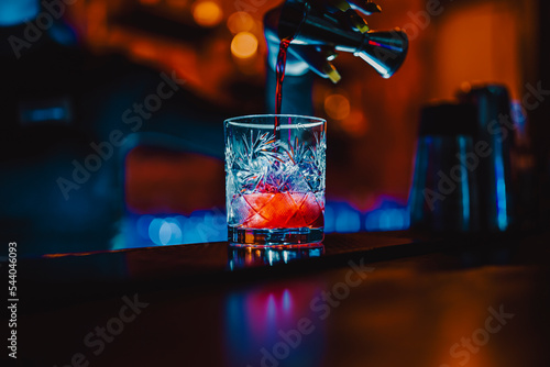woman bartender hand making cocktail in nightclub