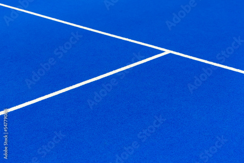 Blue paddle tennis court. Blue court with white lines. Horizontal sport poster, greeting cards, headers, website.