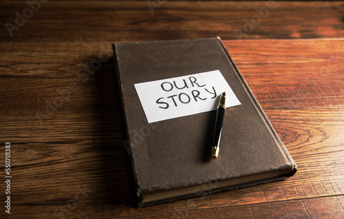 On the cover of the book paper with the inscription Our story