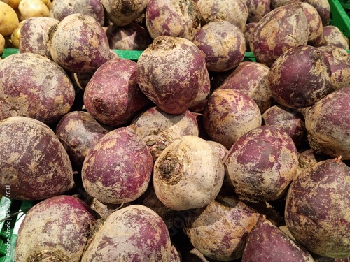 Warzywa i owoce na wystawie sklepowej przygotowane na sprzedaż.