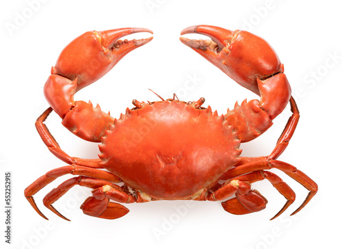 Seafood dish, Boiled Serrated mud crab on white background , Steamed Red Crab seafood Isolate on white with clipping path.