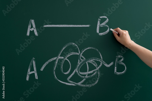 Straight line and curve on blackboard