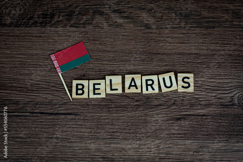 Belarus - wooden word with belarus flag (wooden letters, wooden sign)