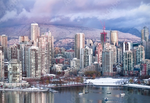 View of Vancouver downtown at sunrise. Vancouver skyline. British Columbia. Canada