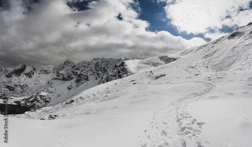 Wędrówka górka zimowa z Doliny Gąsienicowej w kierunku przełęczy Liliowe. Tatry Polskie